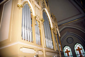 Spielhilfen und Koppeln: Pedal Koppel, Feste Kombinationen (Piano, Mezzoforte, Tutti, Auslöser)